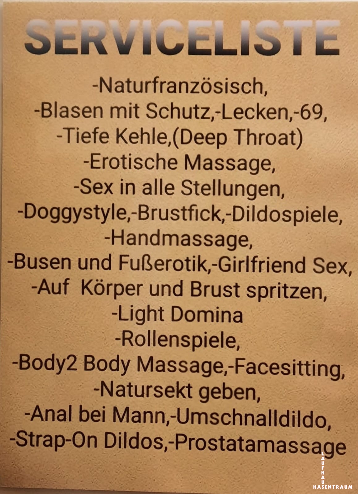 Betty Meine Telefonnummer: 0650/7901482Anwesend bis: 26.10.2025Sprache(n): deutschHaarfarbe: blondIntimrasur: rasiertNationalität: Europäische UnionAlter: 37 JahreGröße: 164 cmMein Service für Dich:auf Anfrage!Du findest mich im Zimmer: 5